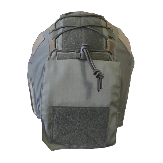 На ковері надійно закріплено функціональну кишеню для зберігання противаг ПНВ, балаклави чи акумуляторного блоку. Кишеню можна відкинути для зручного протягування гумок балістичних масок або тактичних окулярів. За потреби накладку з кишенею можна від'єднати від кавера