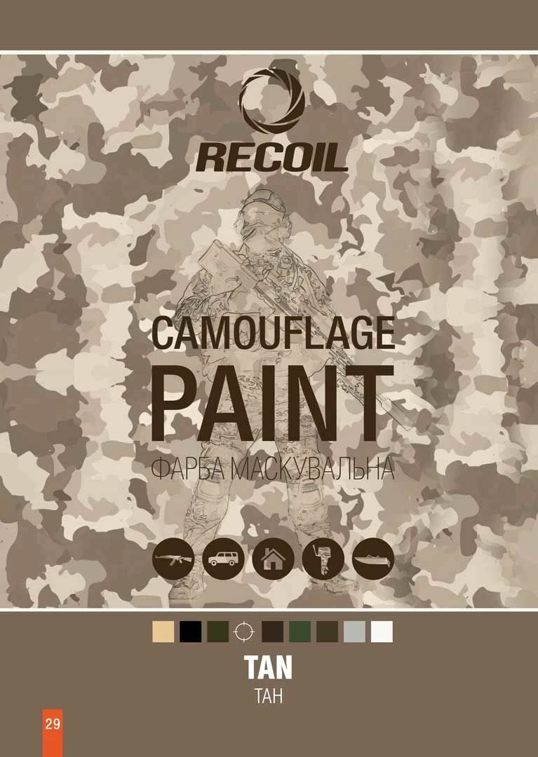 Аерозольна фарба Recoil підходить для будь-яких поверхонь. швидко висихає. Не вблискує на сонці