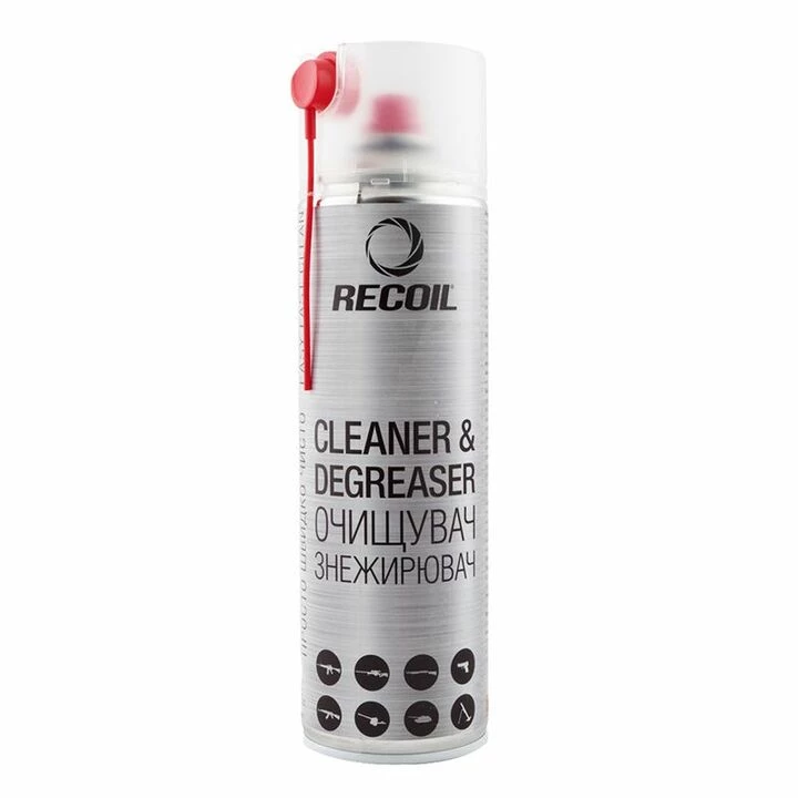 Швидко очищає та знежирює забруднення на всіх елементах зброї; витісняє вологу, як при повному, так і при неповному розбиранні.